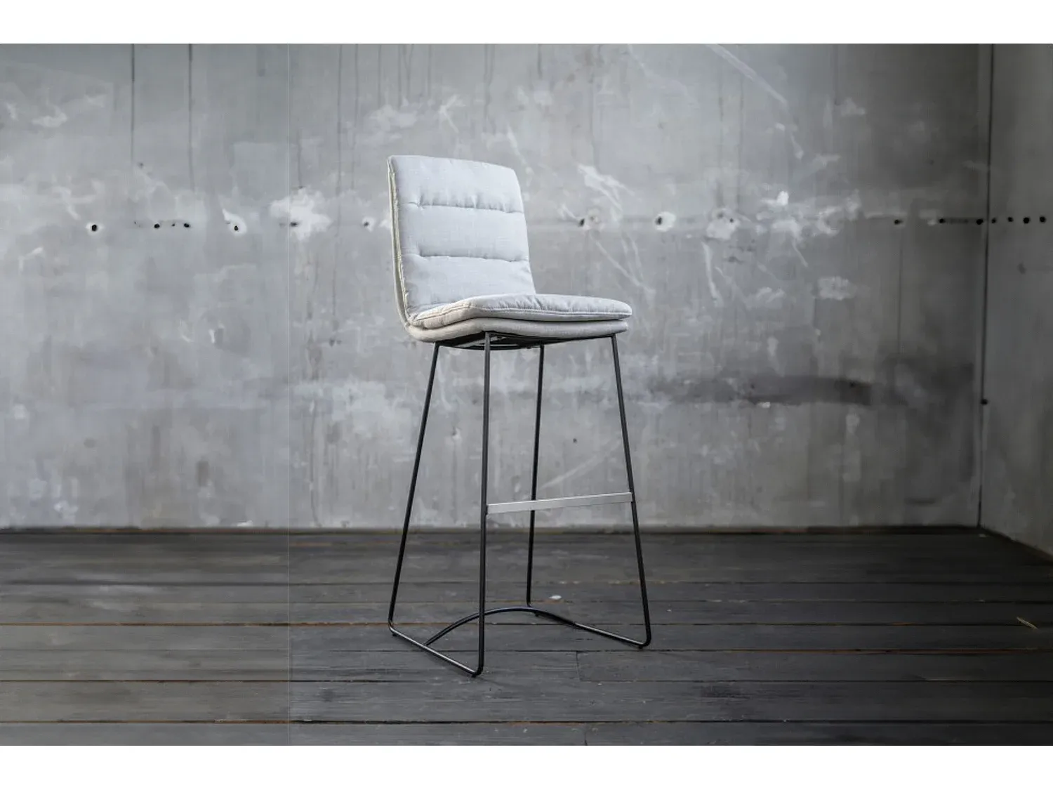 Moderner Barhocker aus hellgrauem Webstoff