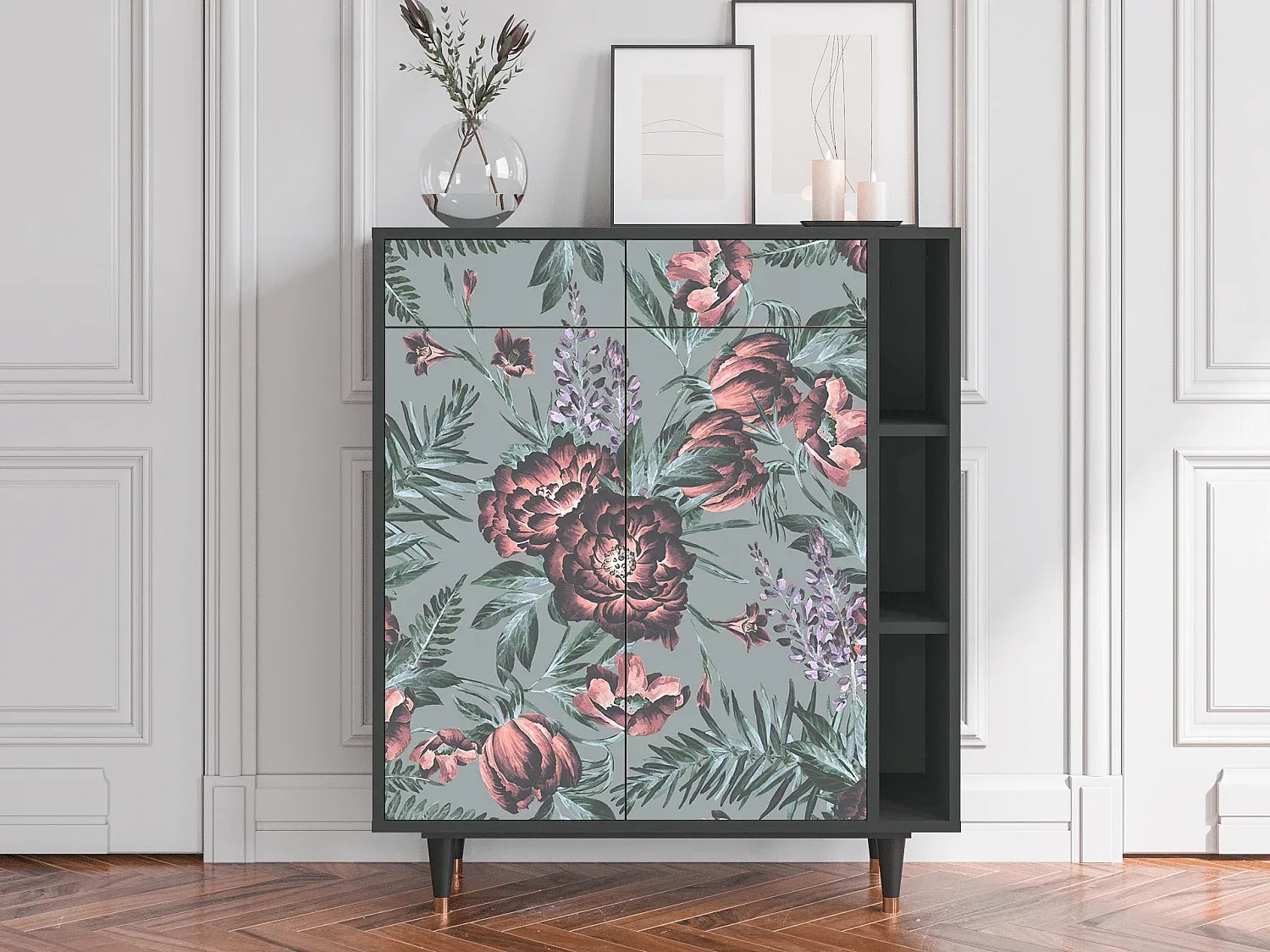 Modernes Sideboard mit Blumenmuster, Anthrazit