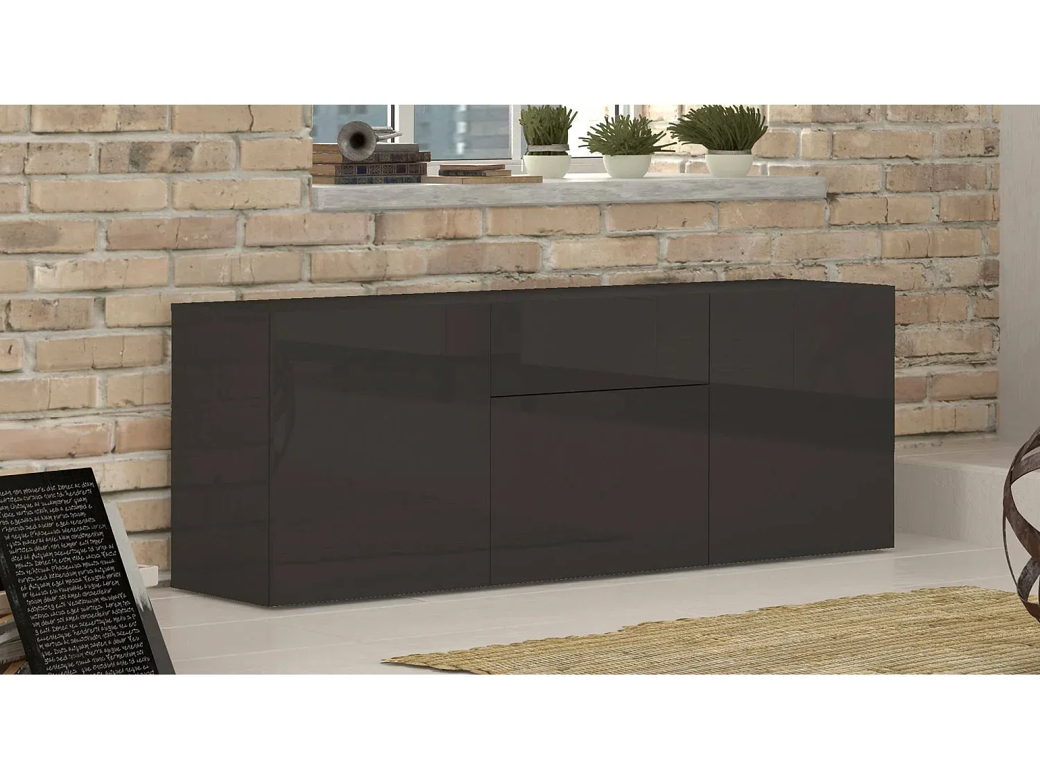 Sideboard mit 3 Türen und Schublade, Wohnzimmer-Buffet, glänzend Anthrazit, 170 x 40 x 35 cm