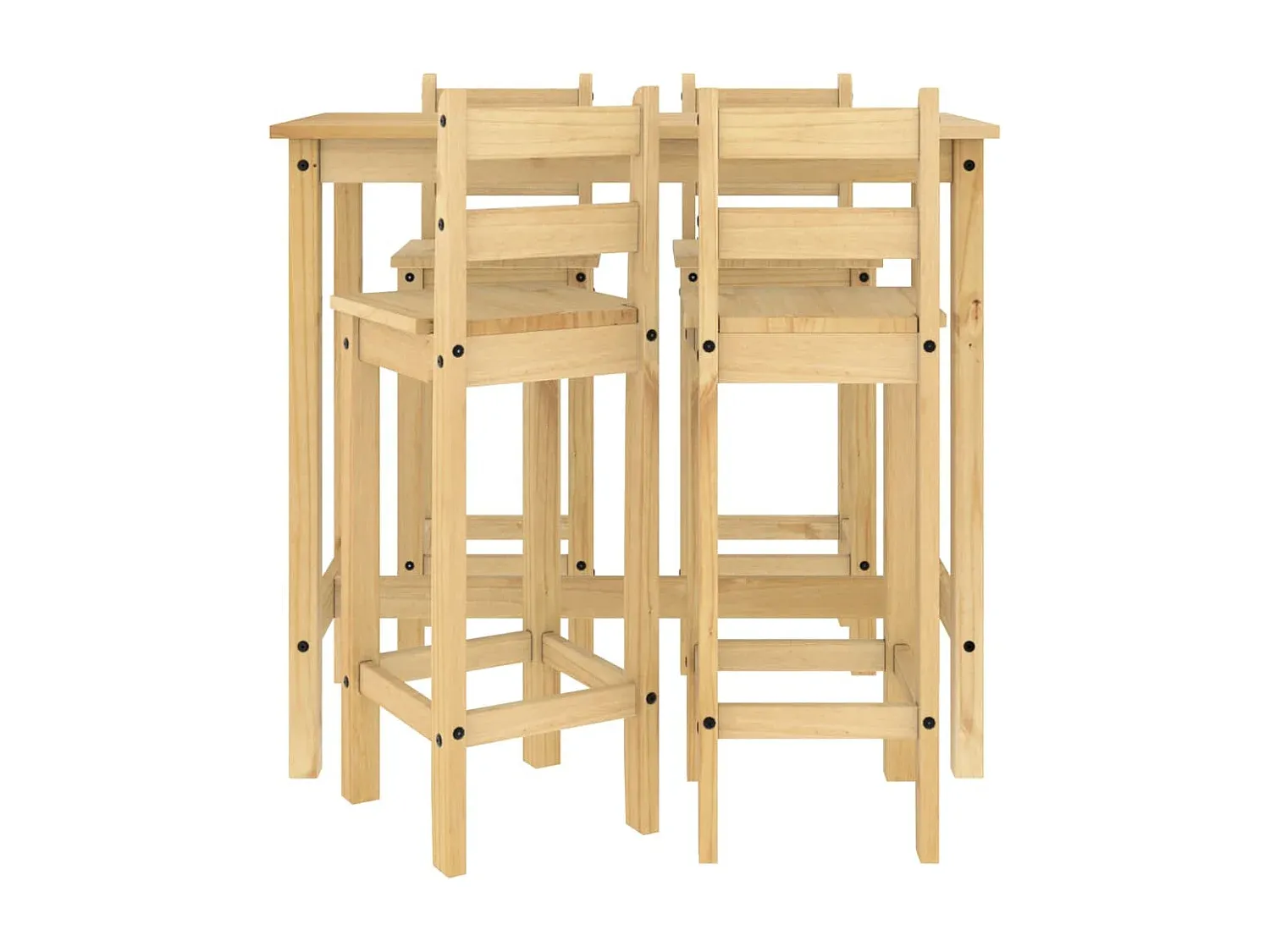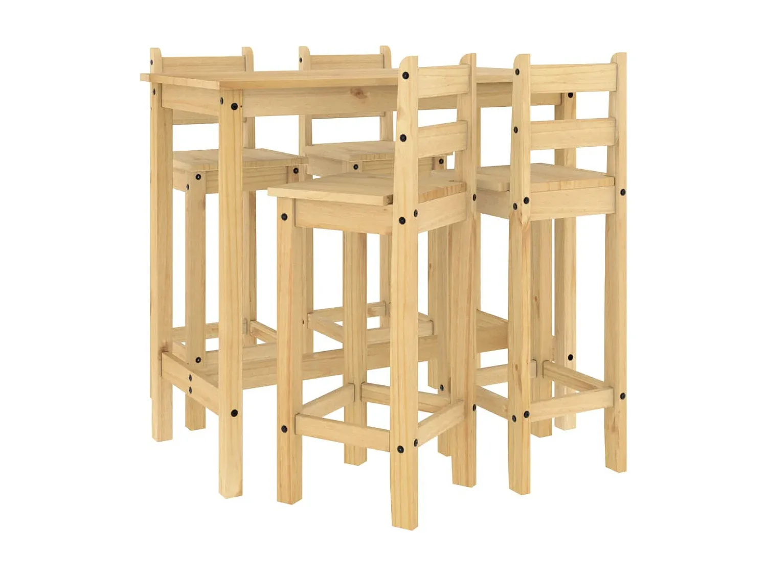 Dieses Holz-Bar-Set bietet eine praktische Lösung für entspannte Momente mit Familie und Freunden. Gefertigt aus massivem Kiefernholz, zeigt es eine gerade Maserung und eine charakteristische Optik. Der Barstuhl verfügt über eine Rückenlehne und eine Fußstütze, die für eine angenehme Sitzposition sorgen. Der Bartisch besitzt eine stabile Tischplatte, geeignet für Getränke, Speisen oder Dekorationen. Dank des minimalistischen Designs passen Tisch und Stühle in verschiedene Räume wie Küche oder Wohnzimmer. Material: Massives Kiefernholz mit Honigwachs-Finish. Abmessungen des Bartisches: 112 x 57 x 101 cm (L x B x H), Abmessungen des Barstuhls: 37 x 38,5 x 107 cm (B x T x H), Maximale Tragfähigkeit pro Sitz: 110 kg. Zusammenbau erforderlich.