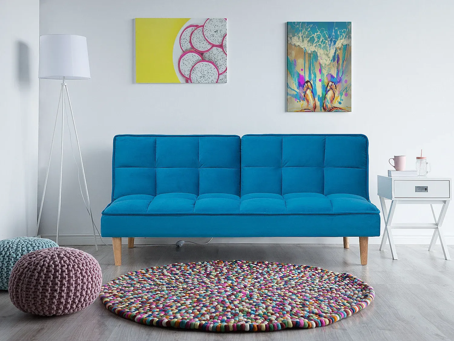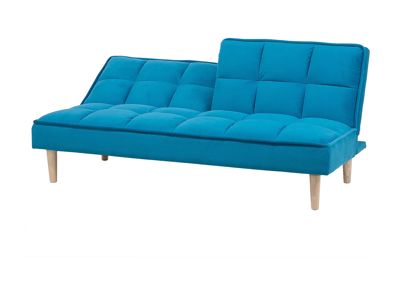 Das 3-Sitzer Sofa bietet eine praktische Schlaffunktion mit verstellbarer Rückenlehne. Der Stoffbezug des Sofas hat schmutzabweisende Eigenschaften, die eine einfache Reinigung ermöglichen. Ohne Armlehnen gestaltet, bietet es mehr Bewegungsfreiheit und Platz. Die hohen Holzbeine und die Polsterung sorgen für komfortables Sitzen. Die Sitzkonstruktion nutzt Wellenfederung, und die Schaumstoffdichte beträgt 50 kg/m3. Die Maße sind: Tiefe 80 cm, Sitzhöhe 37 cm, Breite 177 cm, Höhe 80 cm. Sitzfläche ist 177x51 cm, Liegefläche 177x105 cm. Maximalbelastung ist 120 kg pro Person.