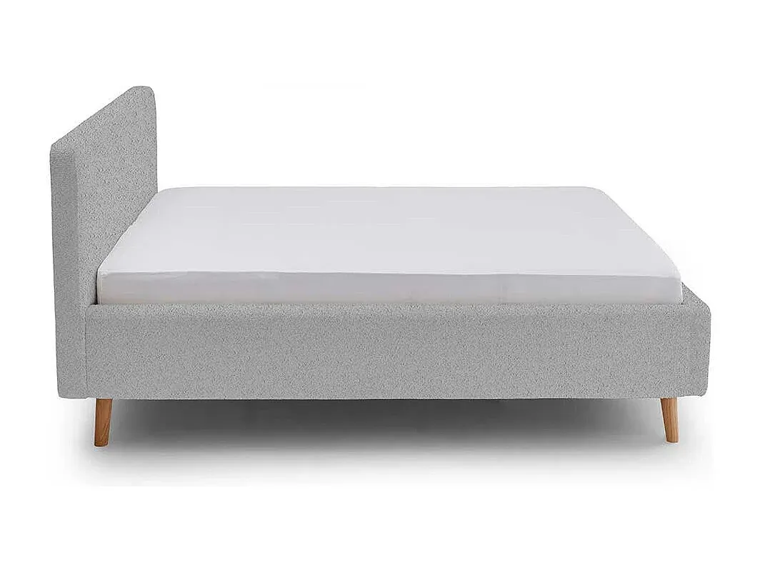 Polster Doppelbett in Grau mit einer Liegefläche von 160x200 cm oder 180x200 cm. Es hat eine Einstiegshöhe von 48 cm und besteht aus einem Holzfußgestell. Das Kopfteil ist 105 cm hoch, das Fußteil ebenfalls 48 cm. Der Lattenrost und die Matratze sind nicht im Lieferumfang enthalten. Das Bett aus Webplüsch und Eiche Massivholz wird zum Selbstaufbau geliefert. Weitere Eigenschaften sind die rechteckige Form, die Einlegetiefe für den Lattenrost von 20 cm und der Abstand vom Boden zum Seitenteil von 18 cm.