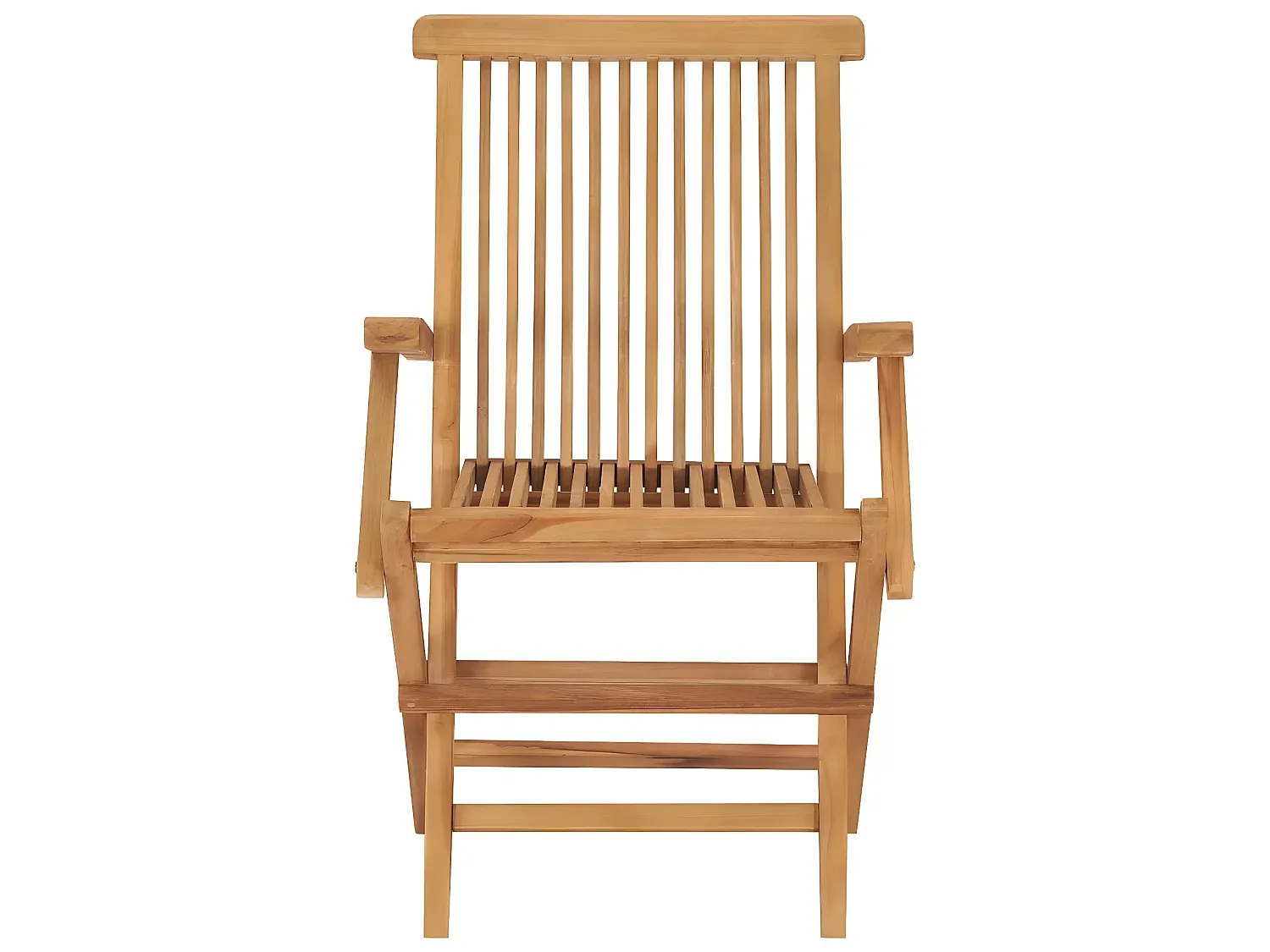Dieses Gartenstuhl-Set bietet ein funktionales Design für den Außenbereich. Gefertigt aus technisch getrocknetem und fein geschliffenem Teakholz, zeichnet es sich durch seine Festigkeit und Witterungsbeständigkeit aus. Die Stühle sind klappbar und bei Nichtgebrauch leicht zu verstauen. Material: Fein geschliffenes Teakholz. Stuhlmaße (ausgeklappt): 56 x 62 x 90 cm (B x T x H). Stuhlmaße (zusammengeklappt): 56 x 9 x 109 cm (B x T x H). Sitztiefe: 42 cm, Sitzhöhe vom Boden: 45 cm, Armlehnenhöhe vom Boden: 66 cm. Keine Montage nötig.