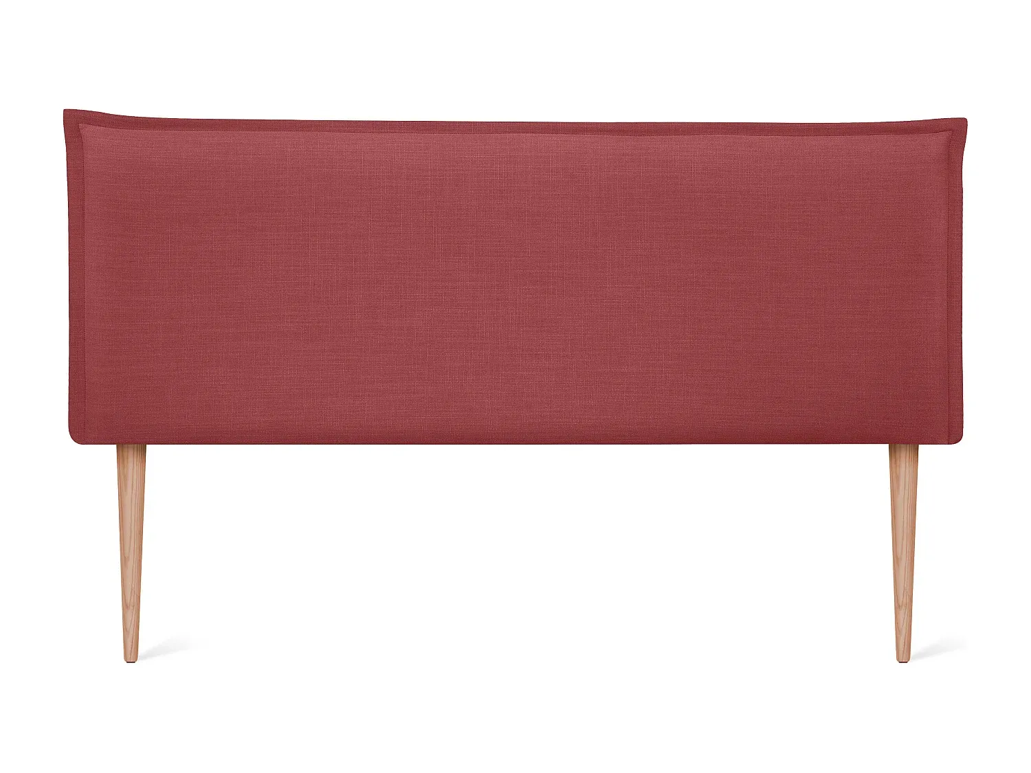Dieses Kopfteil ist mit rotem Leinen gepolstert. Die Konstruktion sorgt für Widerstandsfähigkeit und Langlebigkeit. Maße: 160 cm Breite x 4 cm Tiefe x 105 cm Höhe, geeignet für Betten von 150/160 cm. Das Kopfteil wird mit zwei Holzbeinen geliefert, die durch Gewinde verbunden sind und eine Gesamthöhe von 105 cm erreichen.