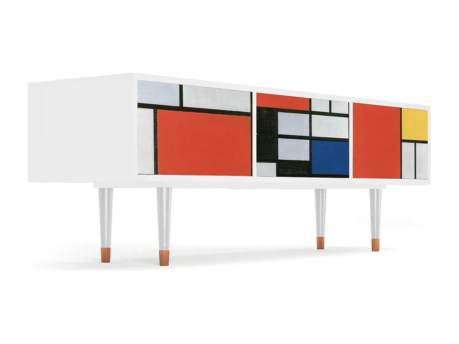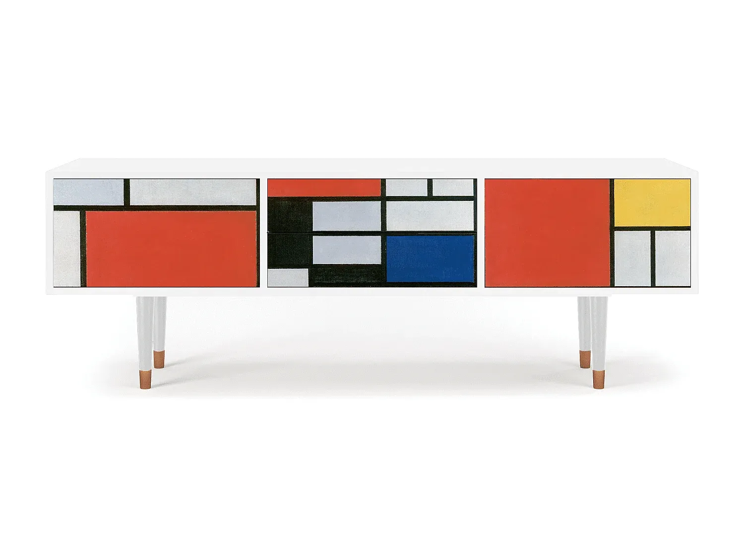 Der T4 bietet funktionalen Stauraum für Gegenstände und ist leicht zugänglich. Das Design unterstützt eine aufgeräumte Optik, passend für Dekoration oder Entertainment-Setups. Jede Front ist präzise gefertigt und mit UV-Druck versehen. Die Oberfläche ist versiegelt für Langlebigkeit und Kratzfestigkeit. Der T4 steht auf stabilen Holzbeinen mit Metallelementen. Er integriert sich in moderne oder klassische Innenräume. Wählbar in verschiedenen Farben und Designs. Maße: Breite 170 cm, Höhe 59 cm, Tiefe 48 cm.