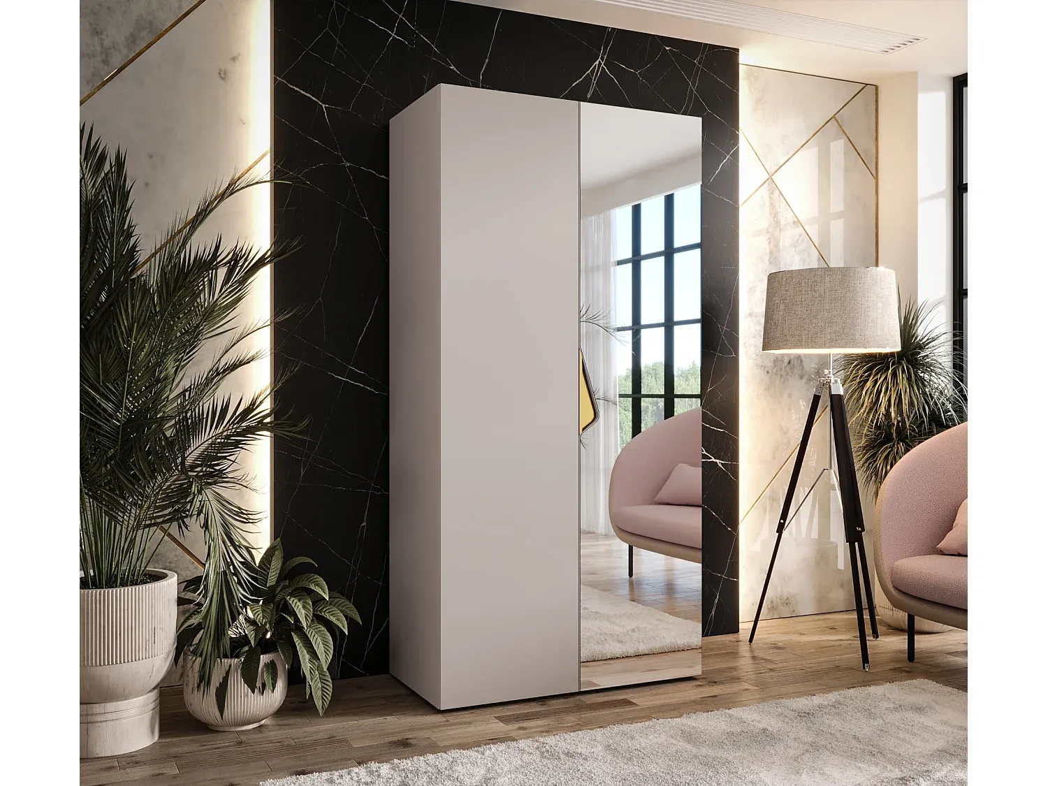 Dieser Schrank bietet eine Kombination aus modernen Designelementen und einfacher Funktionalität. Mit seinen dezenten Metallgriffen und gefrästen Fronten passt er zu verschiedenen Einrichtungsstilen. Erhältlich in mehreren Größen mit der Möglichkeit, zusätzliche Einlegeböden hinzuzufügen. Perfekt geeignet für Schlafzimmer und Flur.