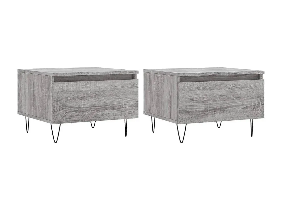 Diese Couchtische bieten Funktionalität für Ihr Wohnzimmer. Aus Holzwerkstoff hergestellt, sind sie einfach mit einem feuchten Tuch zu reinigen. Der Tisch verfügt über eine Schublade, die Platz zur Aufbewahrung bietet. Die Tischplatte eignet sich für Getränke, Snacks und Dekoartikel. Metallbeine sorgen für Stabilität. Farbe: Grau Sonoma. Material: Holzwerkstoff, Metall. Abmessungen: 50 x 46 x 35 cm (L x B x H). Montage erforderlich: Ja.
