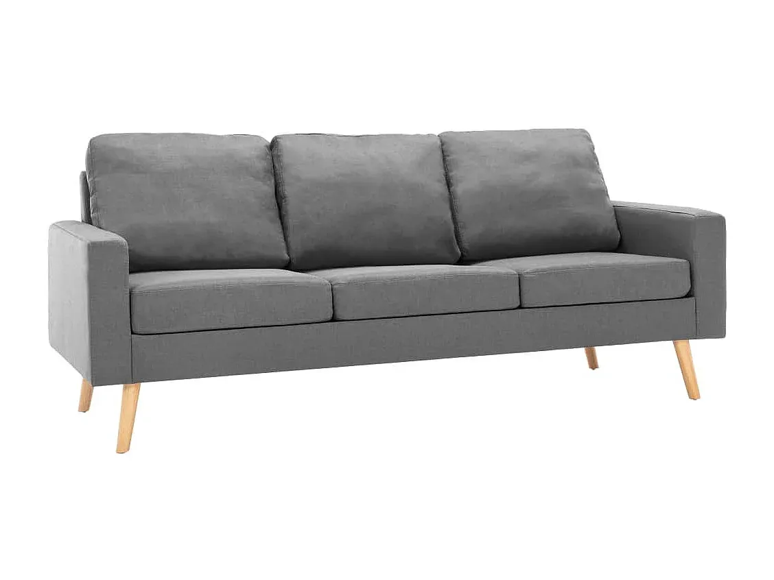 Das 3-Sitzer-Sofa bietet ein angenehmes Sitzerlebnis. Bezogen mit weichem Stoff und ausgestattet mit gepolsterten Kissen, lädt es zum Entspannen ein. Der Rahmen aus Holz sorgt für Unterstützung und Stabilität. Farbe: Hellgrau. Material: Stoff (100% Polyester), Kiefernholz, Gummibaumholz. Das Sitzkissen ist mit Schaumstoff gefüllt, das Rückenkissen mit PP-Baumwolle. Gesamtabmessungen: 184 x 76 x 82,5 cm (B x T x H). Sitzbreite: 162 cm. Sitztiefe: 48 cm. Sitzhöhe vom Boden: 43,5 cm. Armlehnenhöhe vom Sitz: 14 cm. Rückenlehnenhöhe vom Sitz: 45 cm. Zusammenbau erforderlich: Ja.