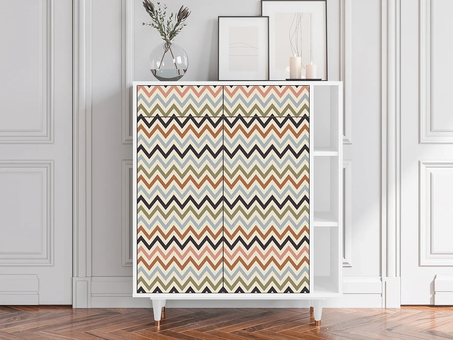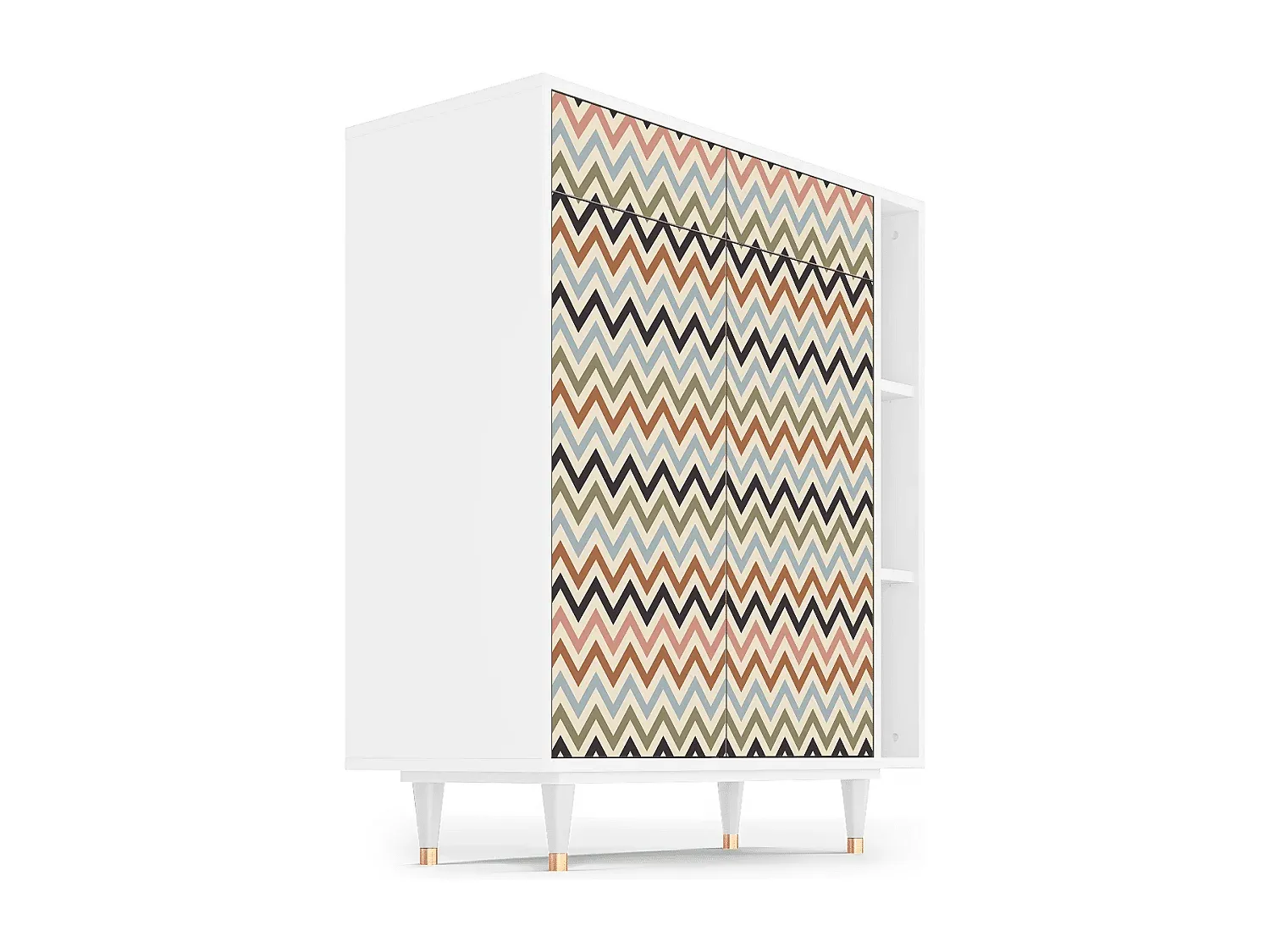 Dieses Möbelstück bietet eine praktische Lösung zur Organisation mit kompakten und leicht zugänglichen Schubladen. Es sorgt dafür, dass Schlüssel, Accessoires und kleine Gegenstände immer griffbereit sind. Das design fügt sich in verschiedene Umgebungen ein und kombiniert Stil mit Funktionalität. Die Fronten sind mit UV-Druck gestaltet und die Oberfläche ist lackiert, um Langlebigkeit zu gewährleisten. Das Möbelstück steht auf stabilen Holzbeinen mit Metallelementen, die sowohl Stabilität als auch ein ansprechendes Aussehen bieten.