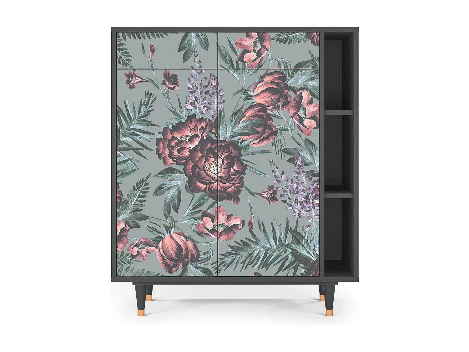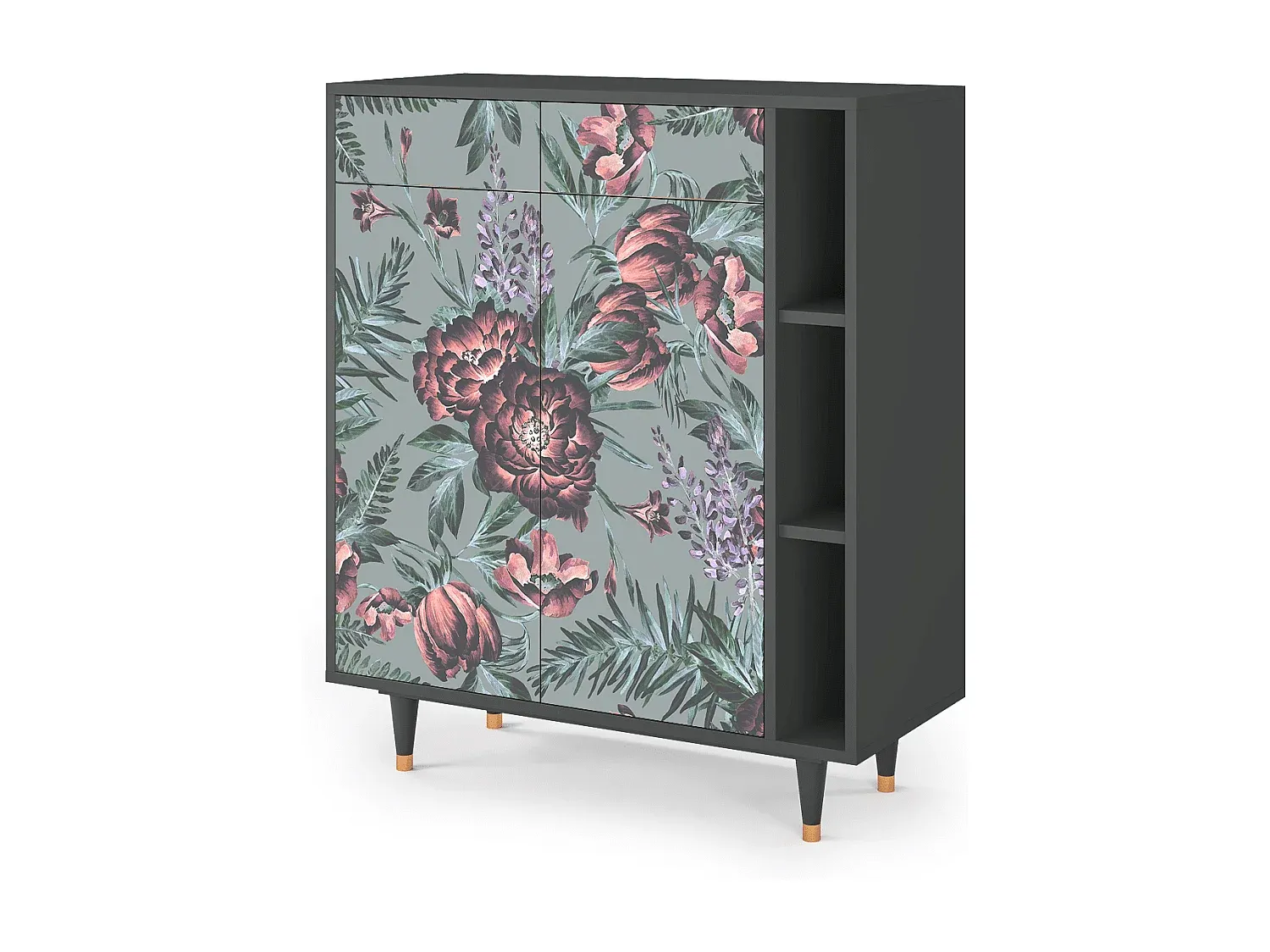 Entwickelt für praktische Organisation bietet das Produkt kompakte und leicht zugängliche Schubladen, die den Alltag erleichtern. Schlüssel, Accessoires oder kleine wertvolle Gegenstände finden ihren Platz. Das Design integriert sich nahtlos in verschiedene Umgebungen und vereint Funktionalität mit einem ansprechenden Erscheinungsbild. Die Oberfläche ist mit einem schützenden Lack versehen, der für Langlebigkeit sorgt. Zwei Türen mit Schwingmechanismus ermöglichen einfachen Zugriff. Das Möbelstück ist konstruiert für Bodenaufstellung und eignet sich für verschiedene Einrichtungskonzepte.