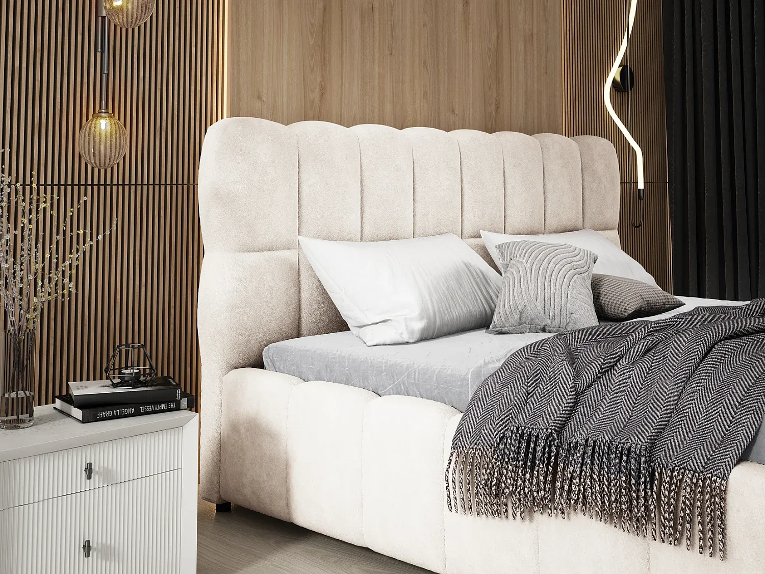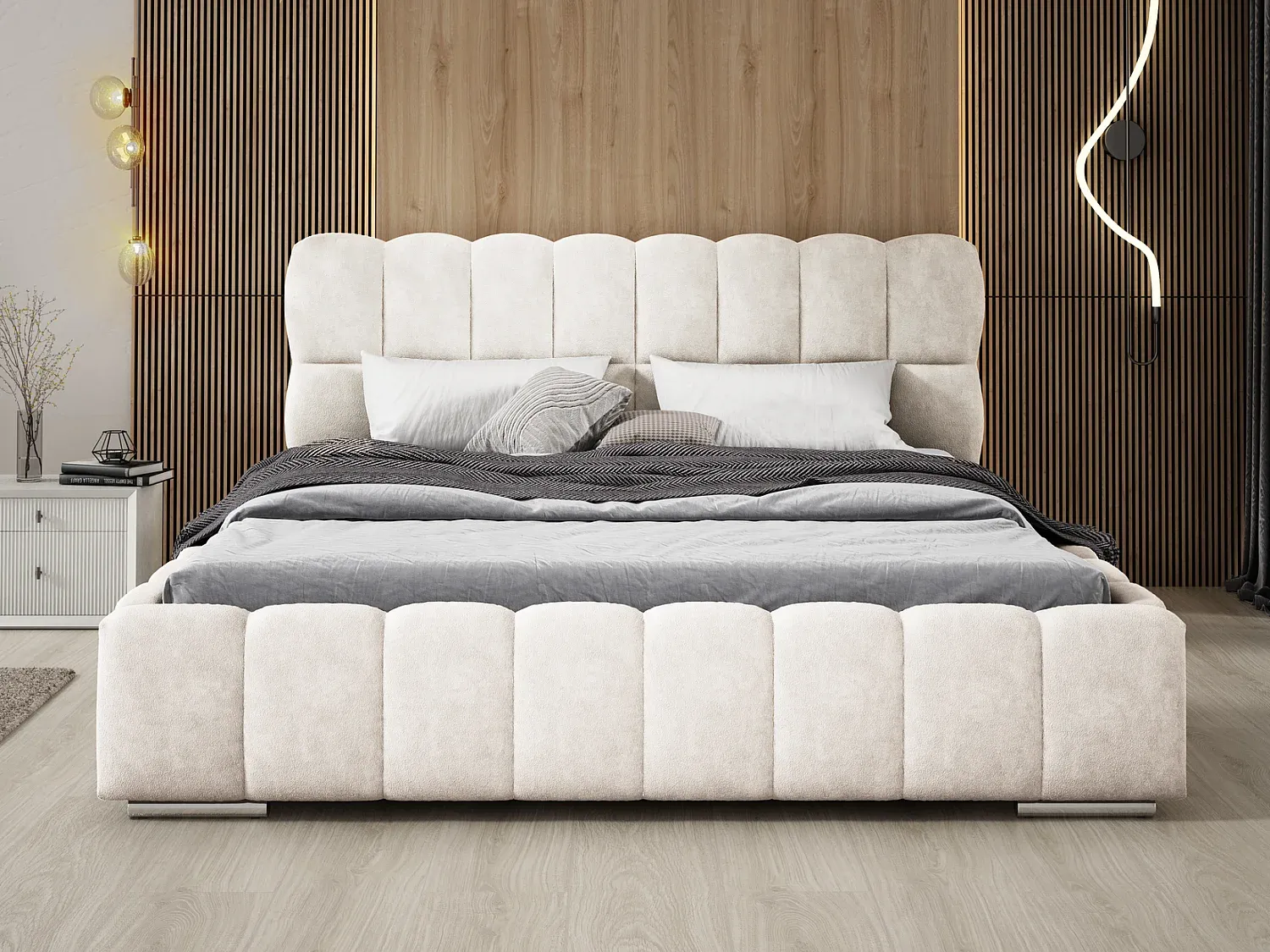 Das Polsterbett bietet eine durchdachte Gestaltung für das Schlafzimmer mit funktionalen Eigenschaften. Die robuste Bauweise gewährleistet Stabilität. Der Rahmen ist an verschiedene Matratzen anpassbar und unterstützt den Schlafkomfort. Der Bezug ist aus Schaumstoff, der leicht zu reinigen ist und wasserabweisende Eigenschaften besitzt.
