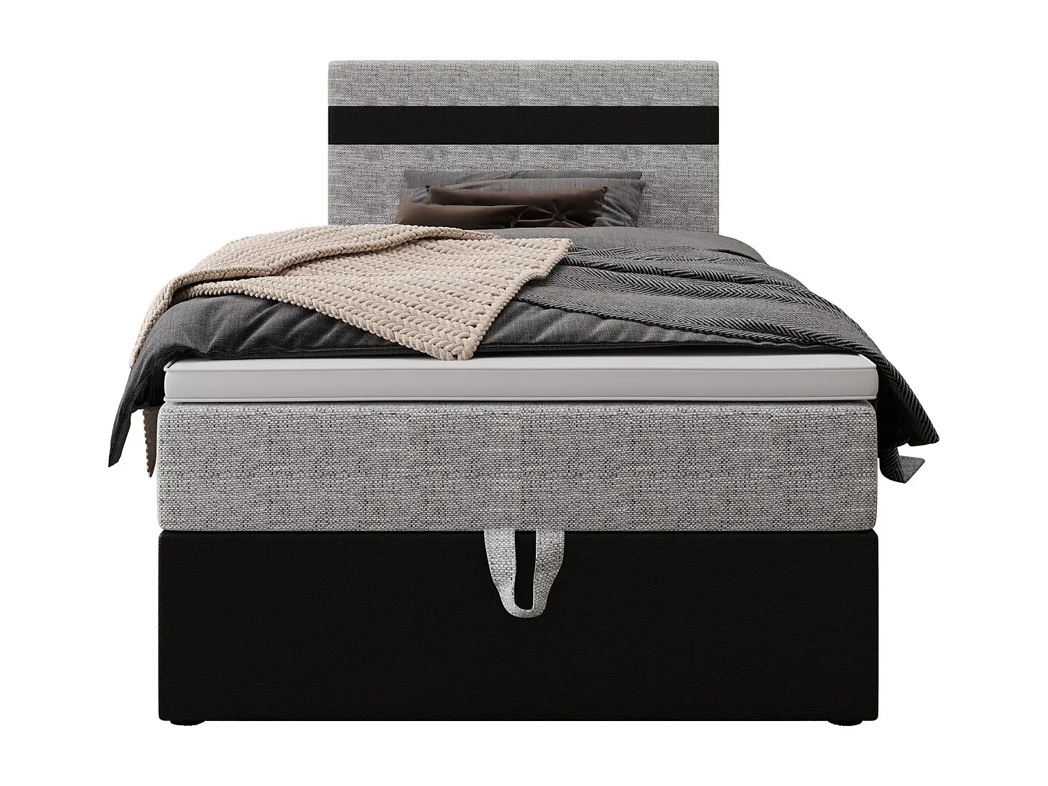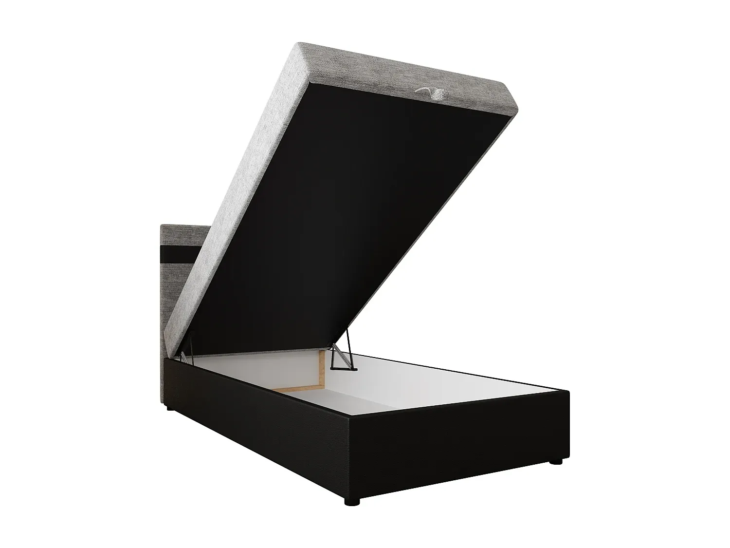 Das Boxspringbett bietet eine mittelharte Matratze mit Bonellfedern und T-30-Schaumstoff. Ein integrierter Bettkasten bietet Stauraum für Bettwäsche und Kissen. Ein spezielles System erleichtert das Öffnen. Die Rückenlehne bietet stabilen Halt beim Lesen oder Fernsehen. Der Kornet-Stoff ist ein dick gewebter, strukturierter Stoff und eignet sich für verschiedene Innenräume. Das Bett ist in unterschiedlichen Größen erhältlich.