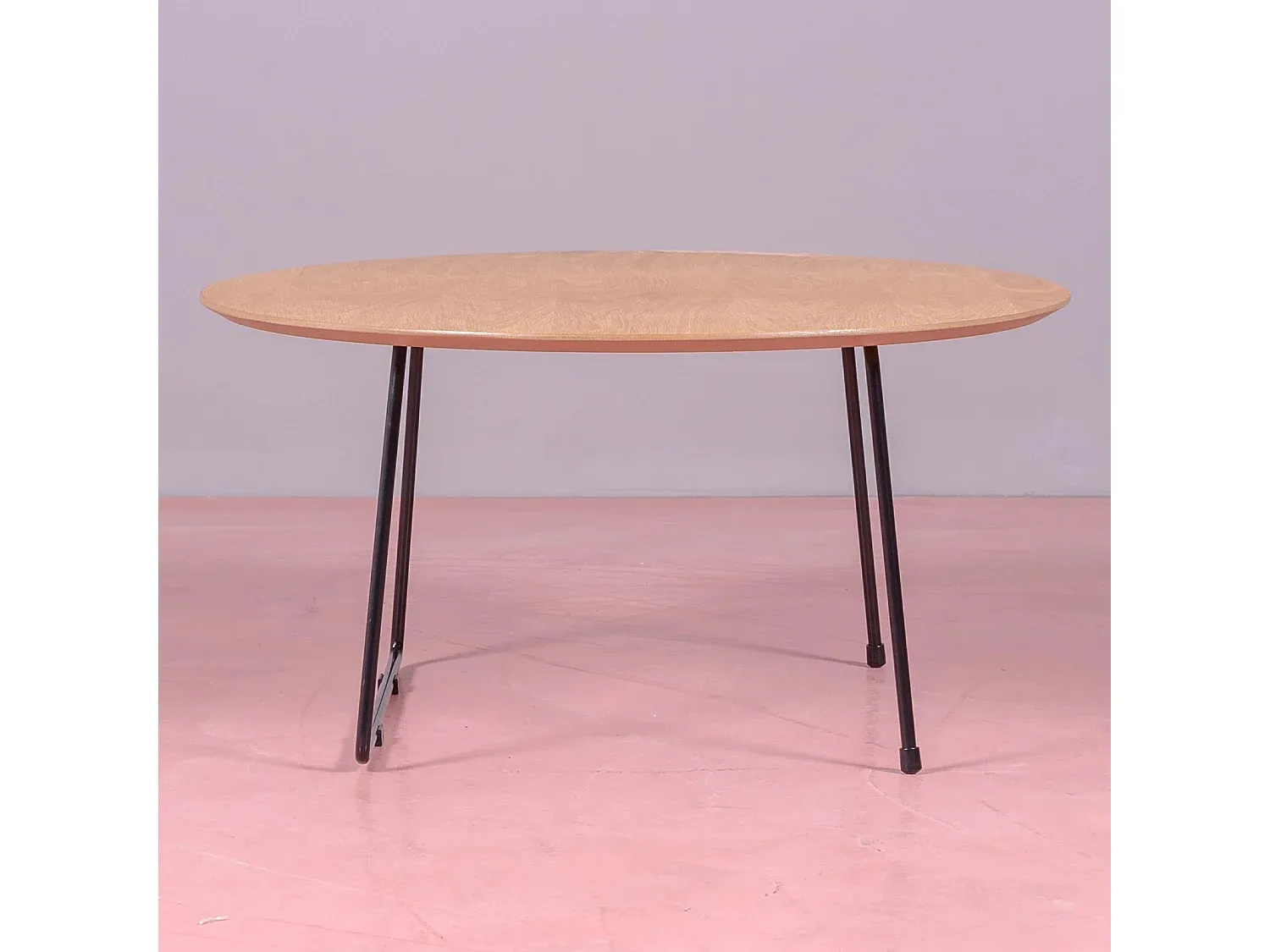Runder Beistelltisch mit 80 cm Durchmesser aus Natureiche. Der Tisch kombiniert Eichenholz mit Stahlbeinen, was ihn zu einer vielseitigen Ergänzung für verschiedene Räume macht. Die Eichenholzplatte zeichnet sich durch ihre Maserung und den Farbton aus.