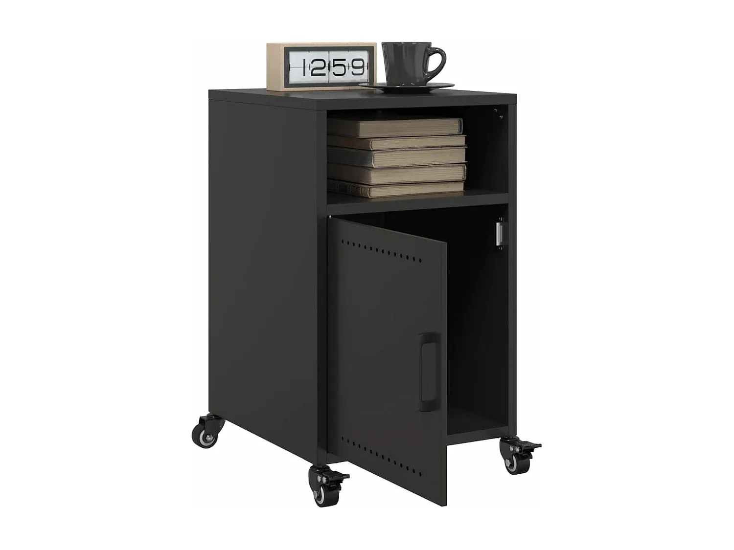 Dieser Nachttisch bietet ein schlichtes Design, passend für verschiedene Wohnräume. Gefertigt aus kaltgewalztem Stahl, bietet er eine glatte Oberfläche und robuste Struktur. Der Schrank ist mit ausreichendem Stauraum ausgestattet, um Zeitschriften, Bücher und andere kleine Gegenstände gut organisiert aufzubewahren. Die Reinigung ist einfach und erfordert kaum Aufwand. Zusätzlich ist der Tisch mit 4 Rollen ausgestattet, was ein einfaches Umstellen ermöglicht. Ein praktischer Griff erleichtert das Öffnen und Schließen der Tür. Abmessungen: 36 x 39 x 59 cm (L x B x H).