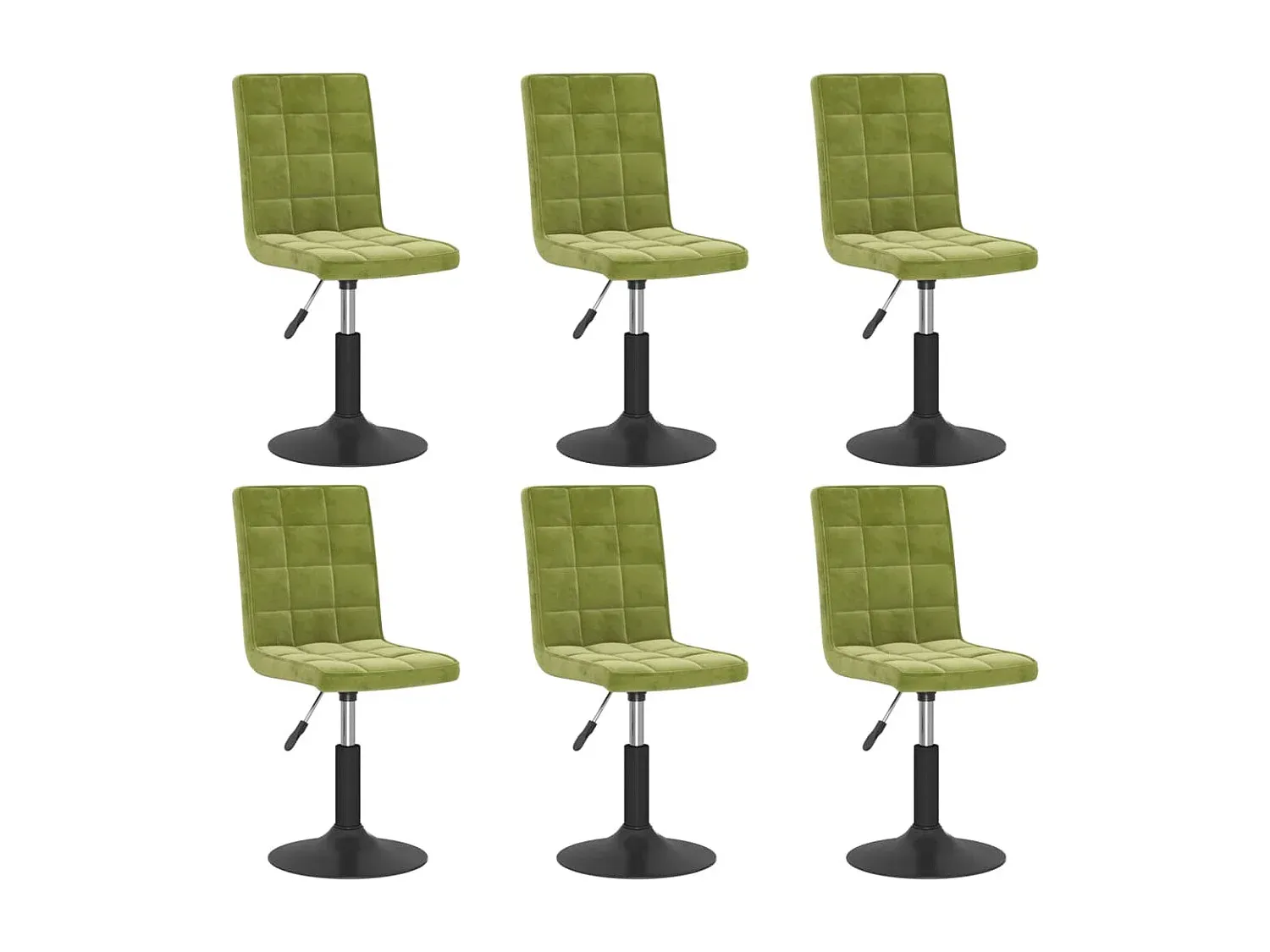 Diese drehbaren Esszimmerstühle sind eine praktische Ergänzung für Küche oder Esszimmer. Der Stuhl ist mit Samt bezogen und bietet angenehmen Sitzkomfort. Das Stahlgestell sorgt für Stabilität. Der Drehstuhl kann dank der Gasdruckfeder in der Höhe verstellt werden und lässt sich um 360 Grad drehen. Farbe: Hellgrün Material: Stahl, Samt (100 % Polyester) Füllung: Schaumstoff Gesamtmaße: 40 x 52 x (102,5-117,5) cm (B x T x H) Standfuß-Durchmesser: 41 cm 360 Grad drehbar Mit Gasdruckfeder Aufbau erforderlich: Ja