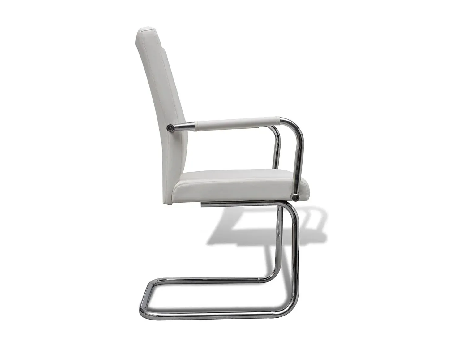 Dieses Set besteht aus 2 Freischwingern aus Kunstleder. Die Stühle verfügen über eine stabile Konstruktion mit Beinen aus Eisen. Die Sitzflächen und Rückenlehnen sind gepolstert und mit Kunstleder bezogen. Die Sitzhöhe beträgt 45 cm, die Armlehnenhöhe 65 cm. Maße des Stuhls sind 52 x 54 x 92 cm (B x T x H).