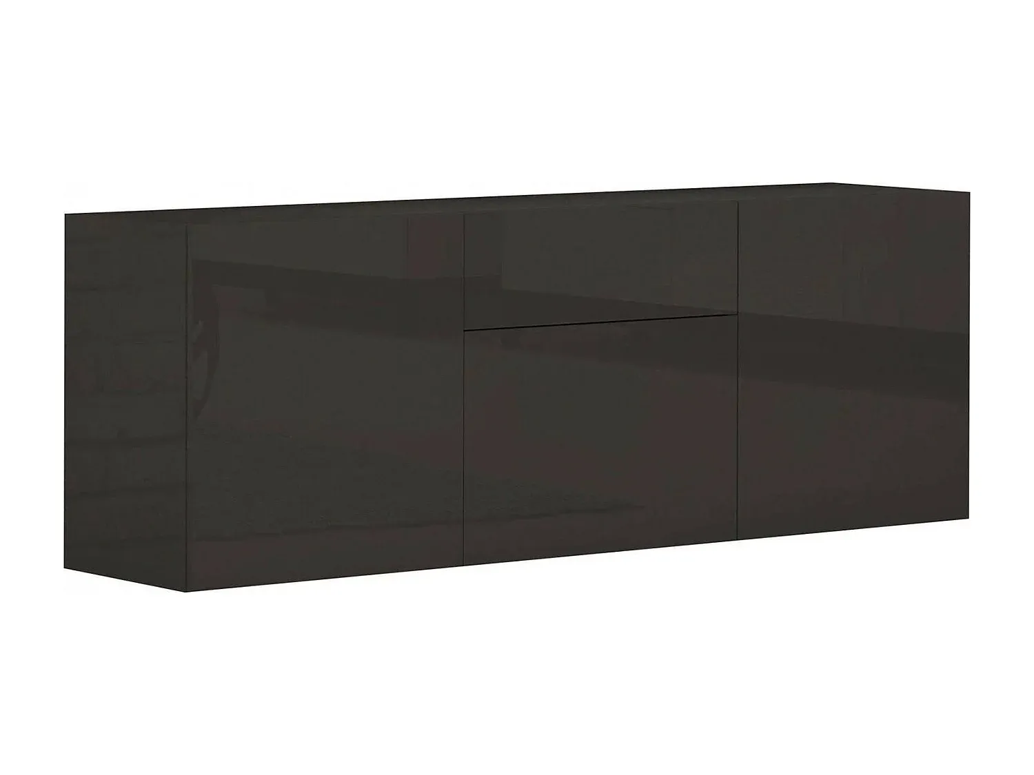 Dieses Sideboard bietet drei Türen und eine Schublade, ideal für die Organisation im Wohnzimmer. Die Vorderseite ist ohne Griffe gestaltet und verfügt über robuste Scharniere und Metallführungen. Hergestellt aus melaminbeschichteten Holzplatten, ist das Möbelstück stoß- und kratzfest sowie wasserabweisend. Es bietet eine langlebige und pflegeleichte Oberfläche. Maße sind 170 cm Länge, 40 cm Breite und 35,2 cm Höhe.