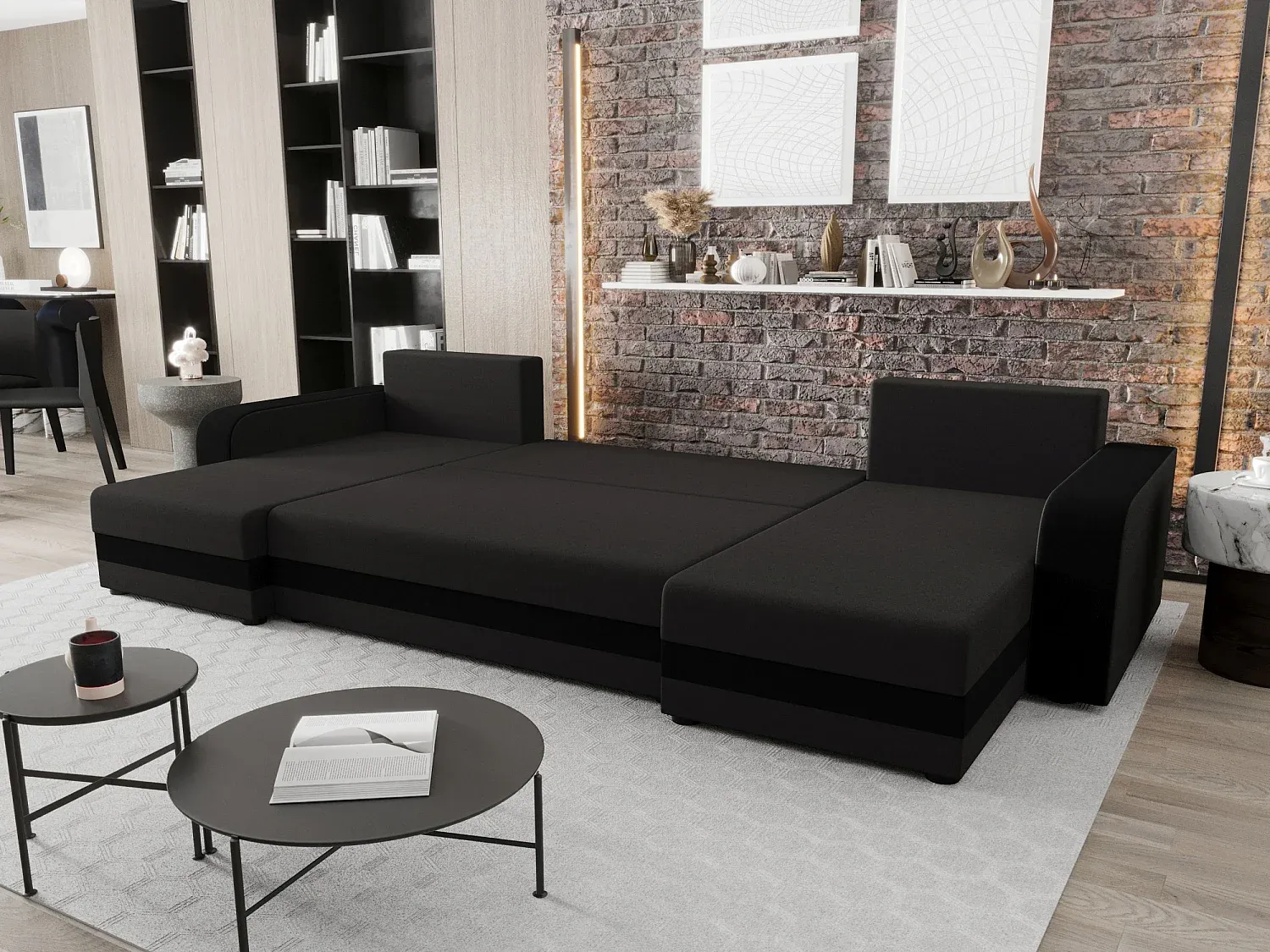 Das Ecksofa bietet eine Kombination aus Funktion und Komfort. Mit klaren Linien fügt es sich gut in diverse Wohnbereiche ein. Das Sofa ist komplett mit Stoff bezogen, einschließlich der Rückenlehne, wodurch es aus allen Blickwinkeln ansprechend ist. Die Sitzfläche ist mit T30-Schaum und Wellenfederung ausgestattet und bietet eine angenehme Polsterung. Es ist einfach in eine Schlaffläche umwandelbar und verfügt über Stauraum für Bettwäsche oder Kissen. Der Rahmen besteht aus Massivholz und Spanplatte, was Stabilität gewährleistet. Farbabweichungen durch Bildschirmdarstellung möglich.