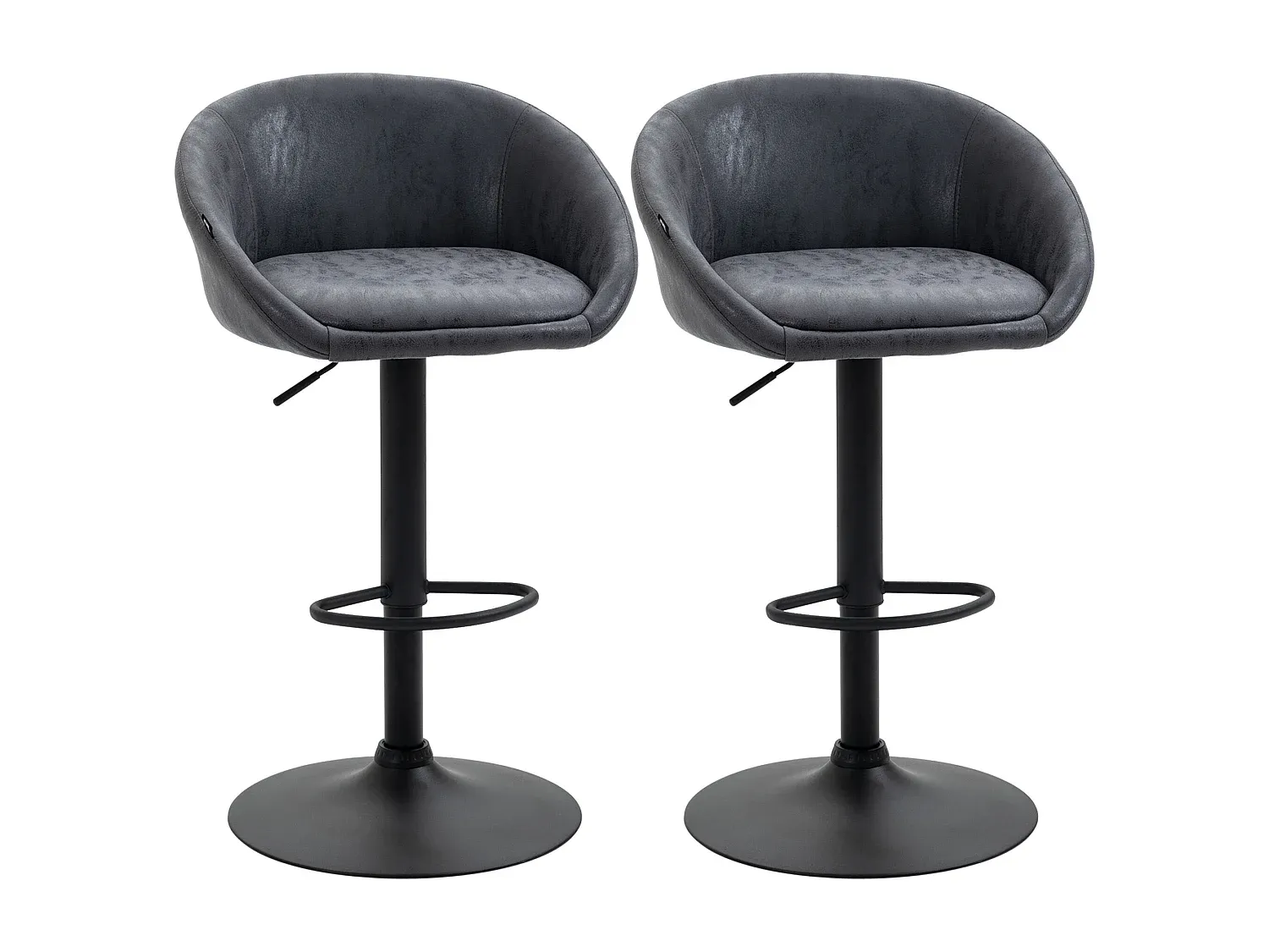 Zweiteiliges Set Barstühle, passend für verschiedene Wohnbereiche. Höhenverstellbar für individuelle Anpassung an Arbeitsplatten und Theken. Ausgestattet mit gepolsterten Sitzen für angenehmes Sitzen, gebogenen Rückenlehnen und schrägen Armlehnen. Das Kunstleder bietet ein angenehmes Gefühl. Metallbasis mit rutschfesten Gummipads schützt den Boden. Gesamtabmessungen: 57 x 50 x 84-104 cm. Geeignet für Stehtischhöhen von 92-102 cm. Maximale Traglast: 110 kg pro Hocker. Zusammenbau erforderlich. Set umfasst zwei Hocker