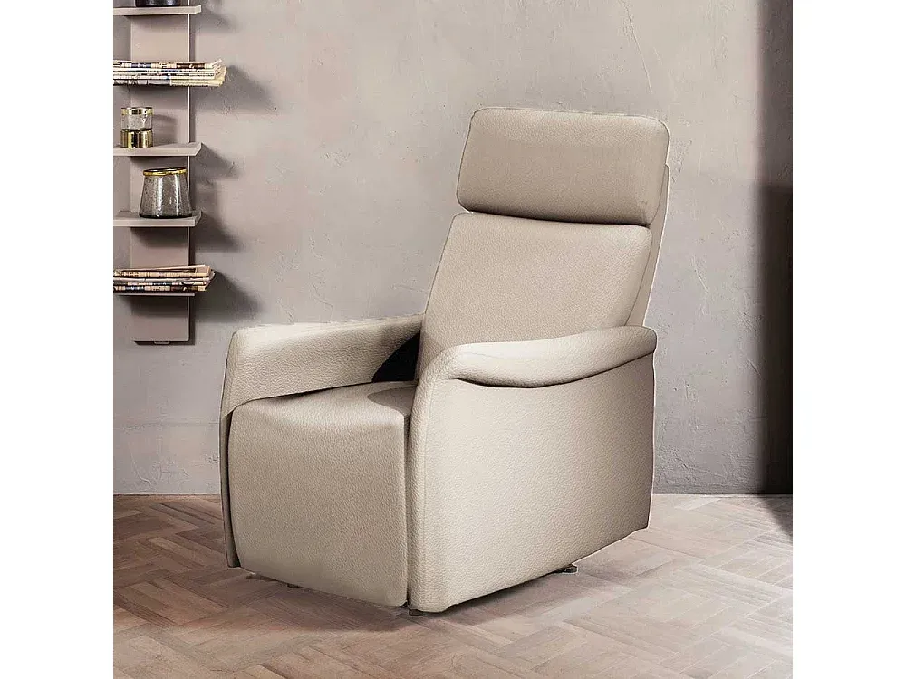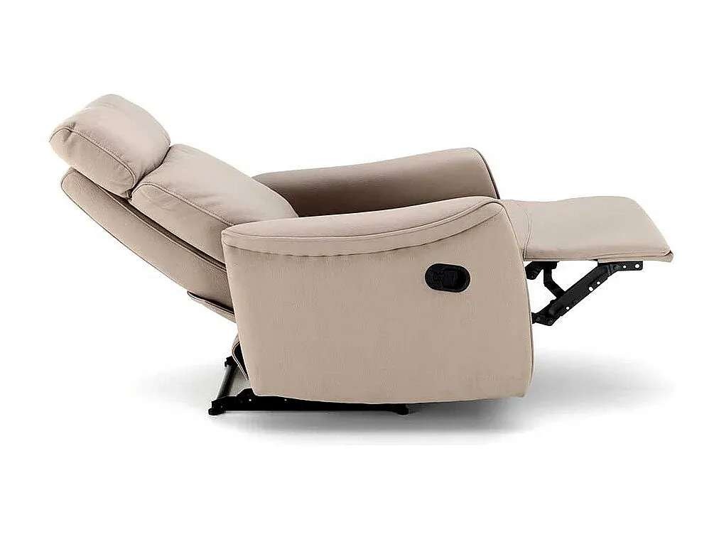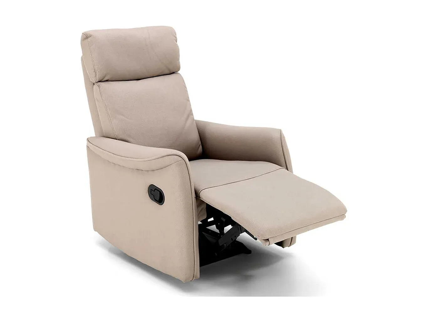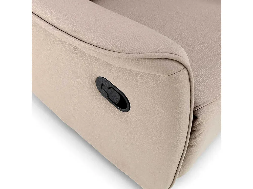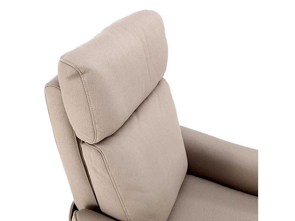 Dieser Sessel verfügt über verstellbare Armlehnen und ein stoffbezogenes Rückenteil. Die Schaumstoffpolsterung bietet Komfort, während das Untergestell aus Massivholz Stabilität gewährleistet. Der Bezug besteht aus Kunstleder (100 % Polyurethan) und die Sitzhöhe beträgt 46 cm. Mit einer Relaxfunktion durch die mechanisch verstellbare Rückenlehne ausgestattet.